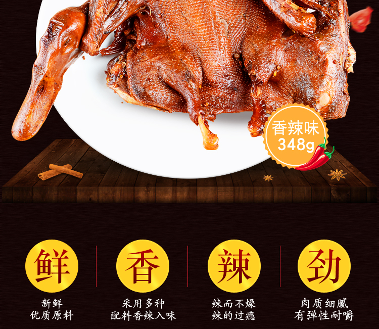 • 配料表: 活鸭,食用味精,绍酒,天然辛香料等
